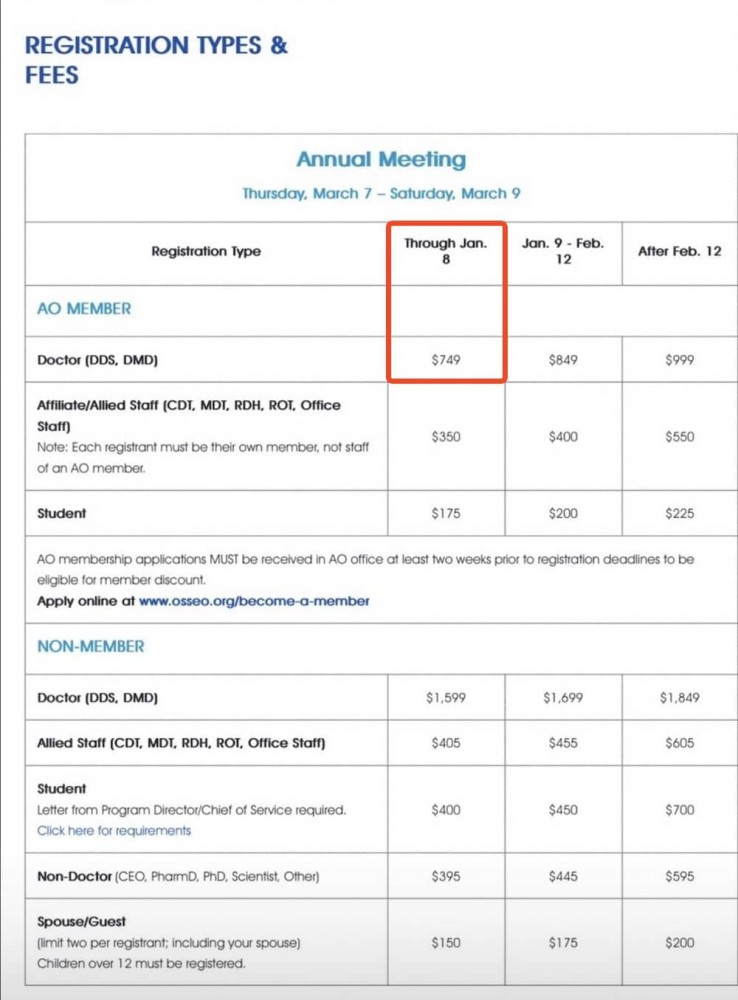 1) TAOi學會會員:欲加入AO之會員請填寫表格(附件一)後寄至TAOi秘書處。建議以姊妹會的管道成為會員(費用250美元)後,則可再於2024/01/08前以最優惠之早鳥會員價註冊(749美元) (附件二)。