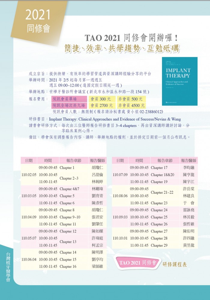 TAOi 台灣植牙醫學會2021 讀書會開辦囉