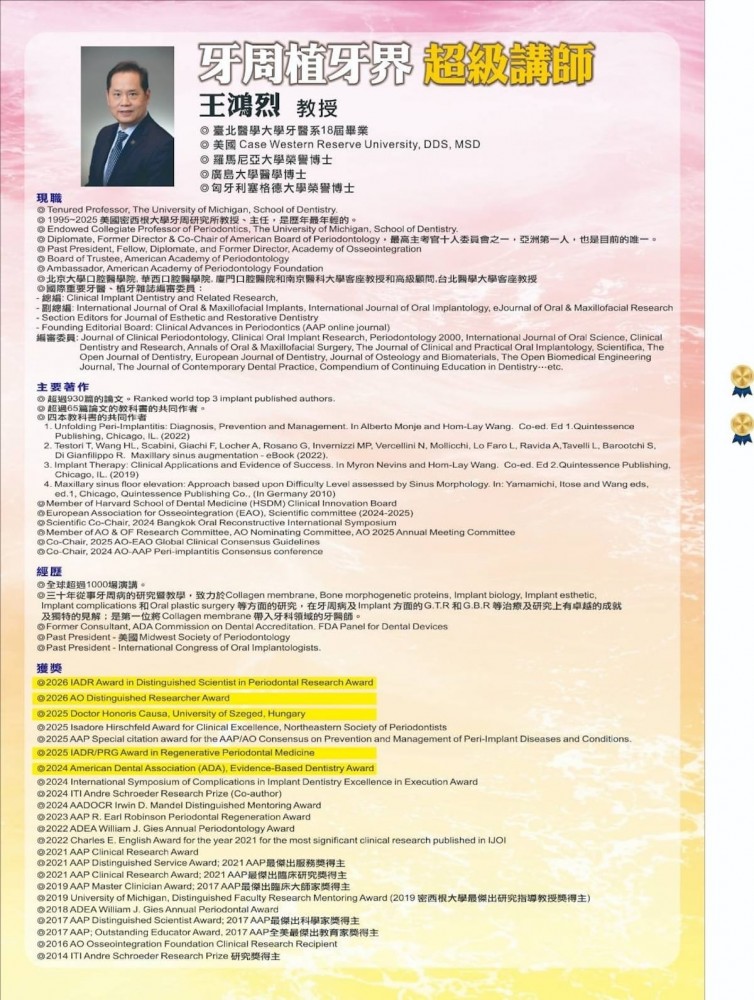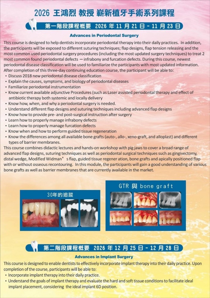 2026 王鴻烈教授 牙周暨植牙手術系列課程
