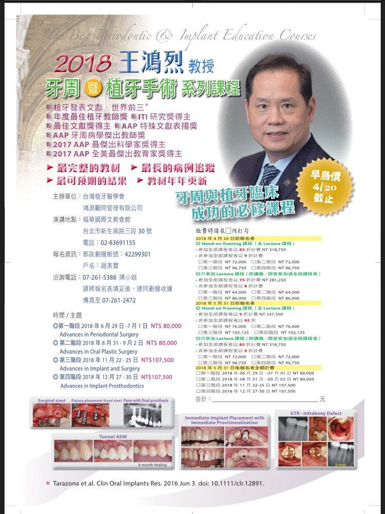 王鴻烈教授 2018四階課程 4/20前超早鳥!